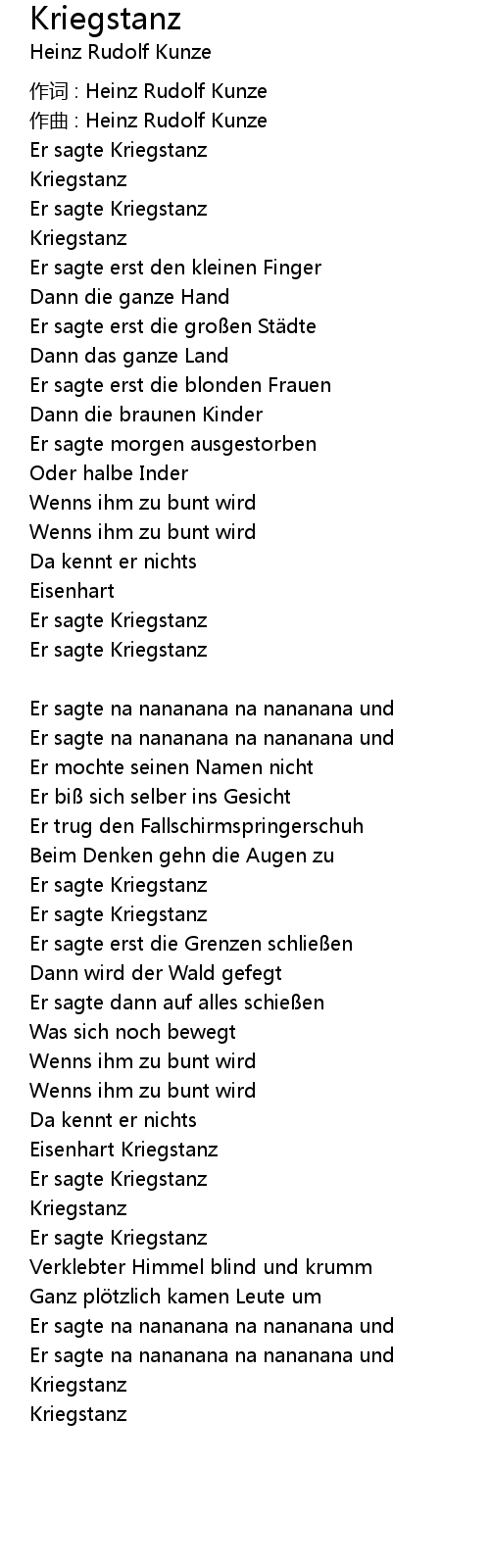 | zuò qǔ : Heinz Rudolf Kunze | |