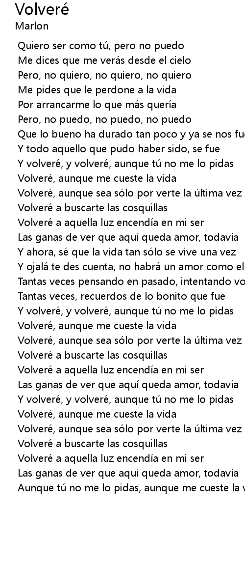 | [02:53.836] | Y volvere, y volvere, aunque tu no me lo pidas |