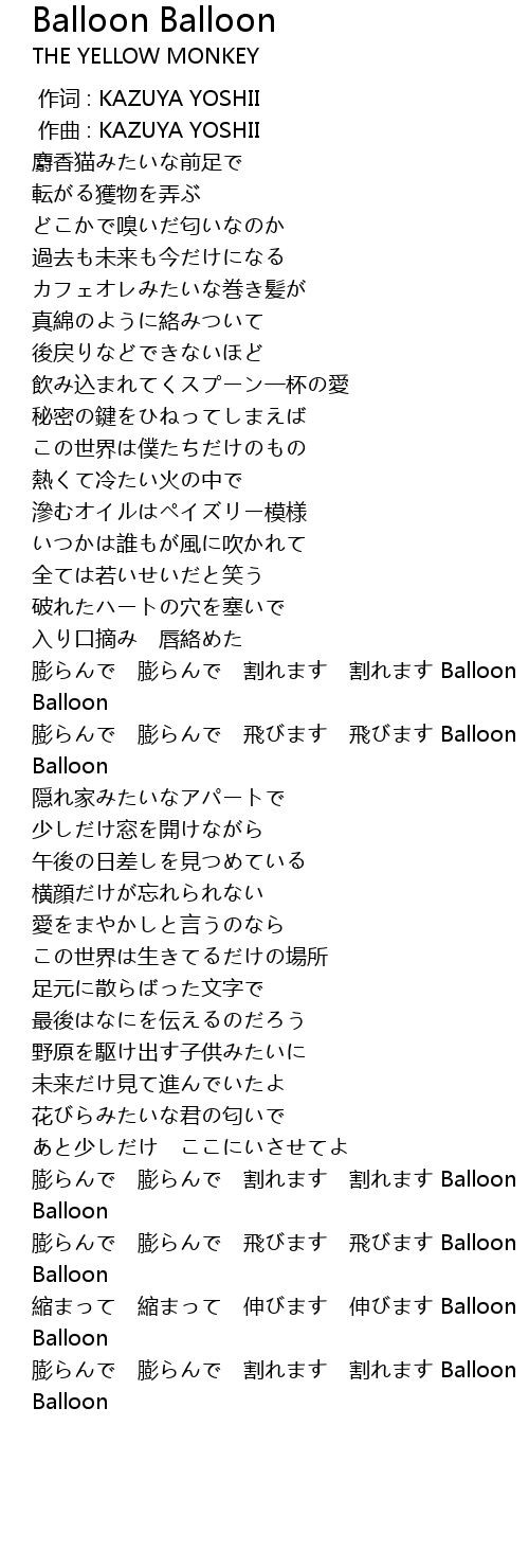 | [03:36.37] | 膨らんで 膨らんで 割れます 割れます Balloon Balloon |
