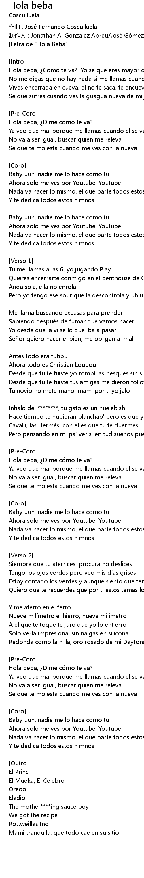 | [Letra de "Hola Beba"] | |