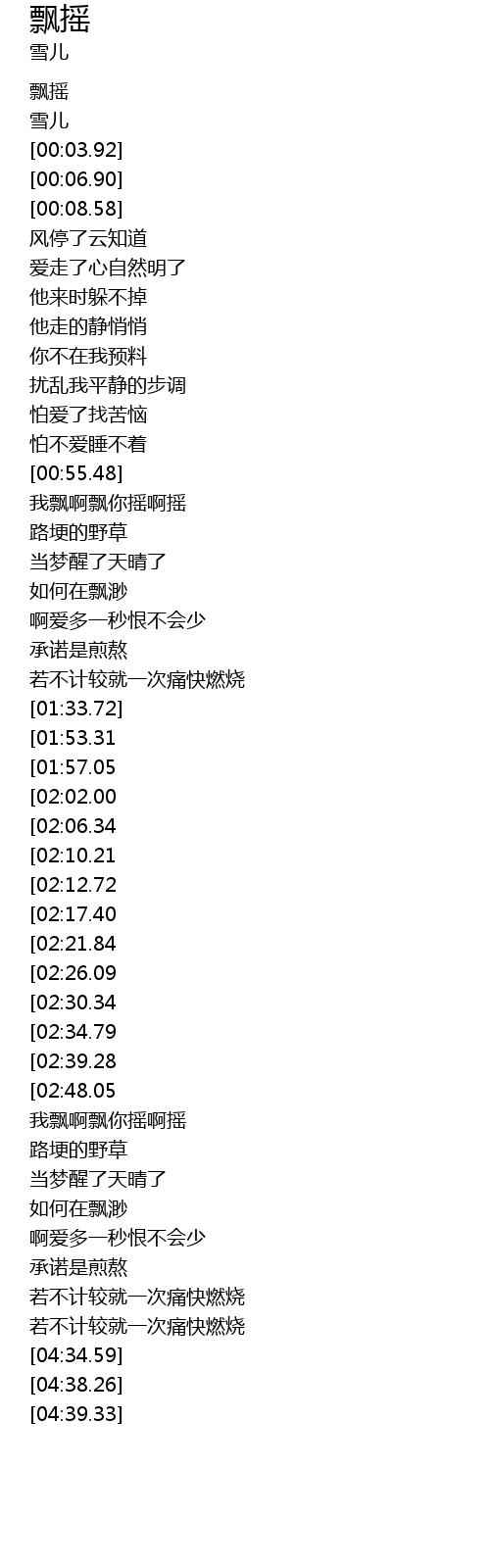 | [03:47.44] | 我飘啊飘你摇啊摇 |