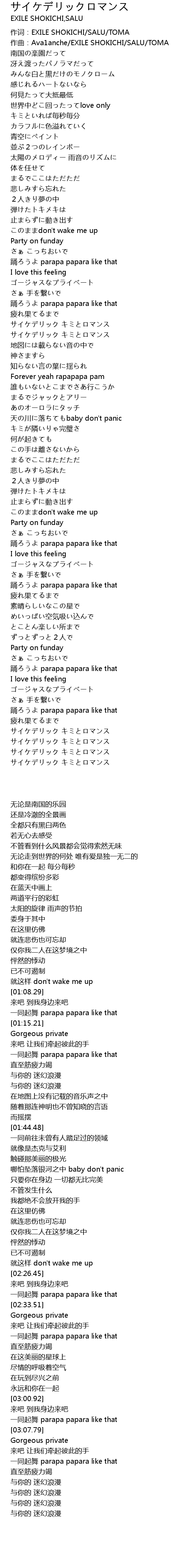 | [00:10.81] | zuo ci: EXILE SHOKICHI SALU TOMA |