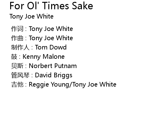 | [00:00.000] | zuò qǔ : Tony Joe White |