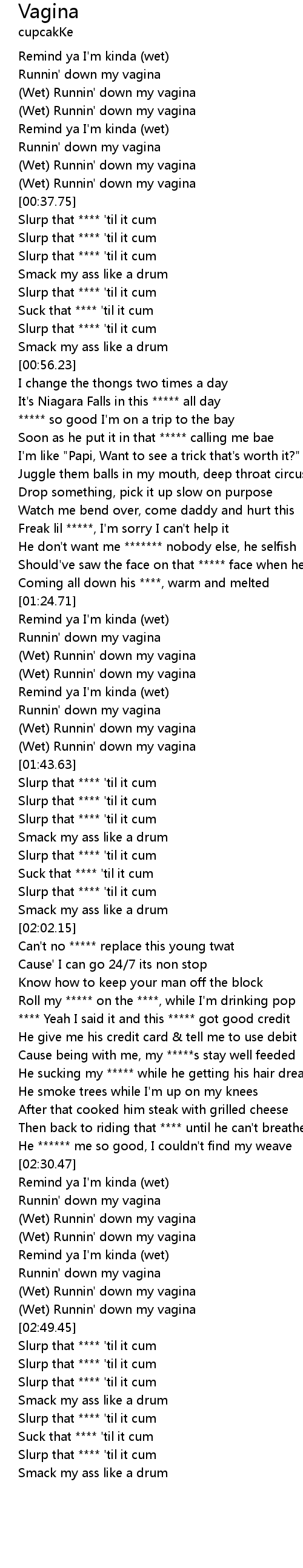 | [01:32.08] | (Wet) Runnin' down my vagina |