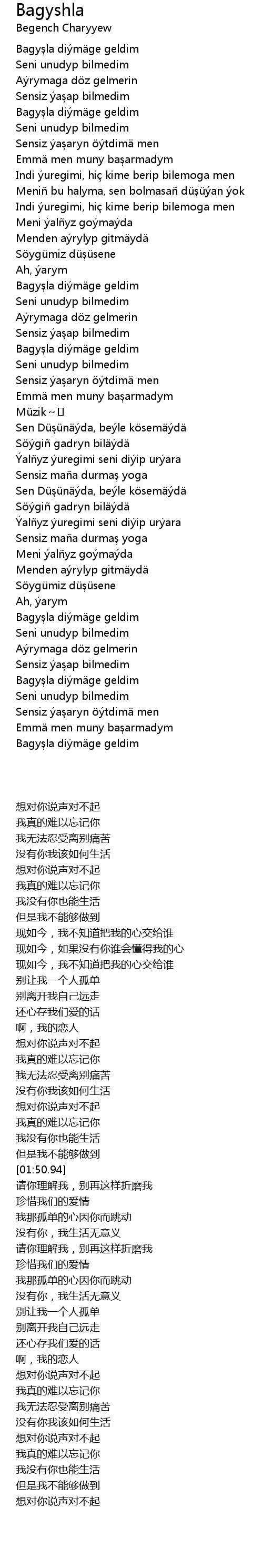 | [02:50.82] | Bagyşla diýmäge geldim |