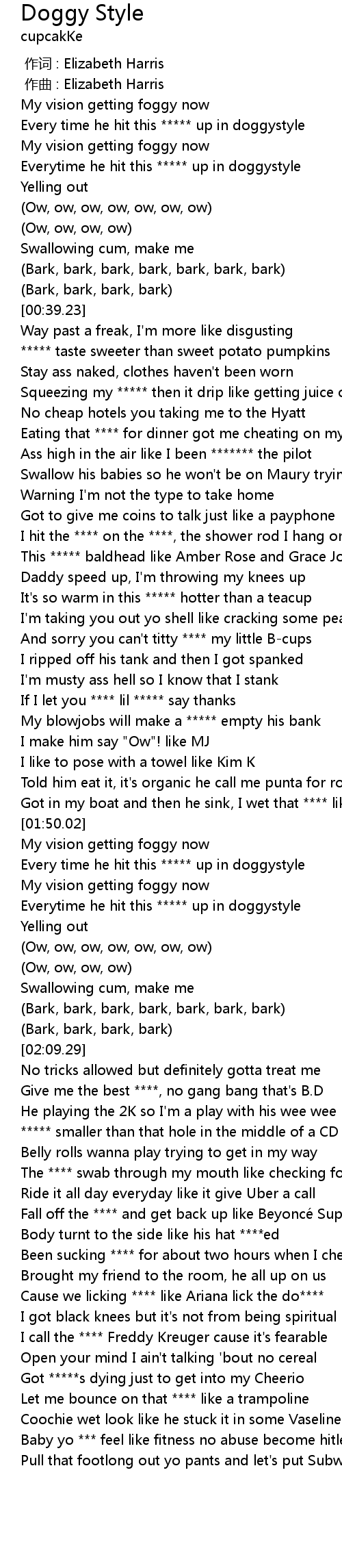 | [01:57.13] | Everytime he hit this ***** up in doggystyle |