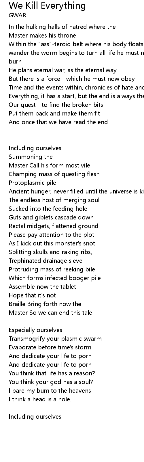 | Within the "ass"-teroid belt where his body floats alone his mind begins to wander the worm begins to turn all life he must now squander the universe must burn | |