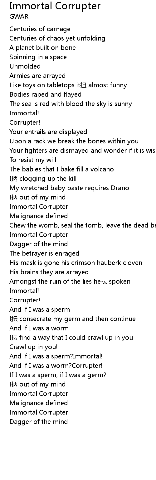 | Chew the womb, seal the tomb, leave the dead behind | |