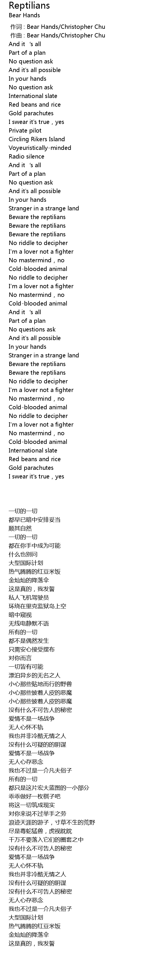 | [00:00.000] | 作词 : Bear Hands/Christopher Chu |