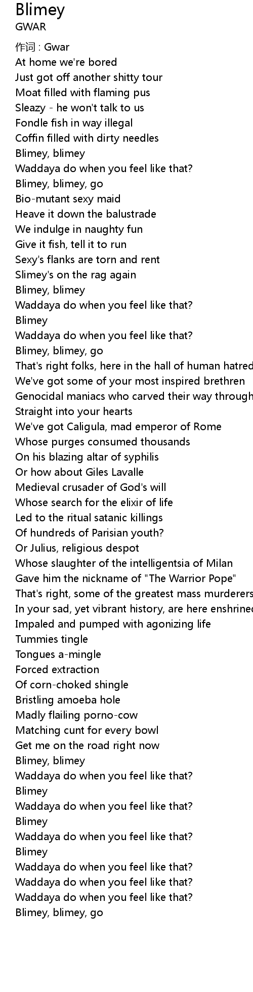 | 作词 : Gwar | |