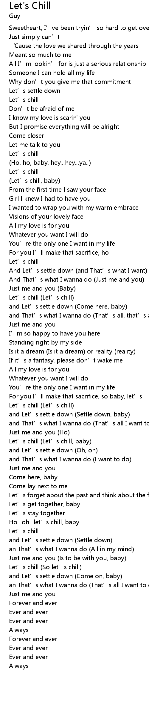 | Ho... oh... let' s chill, baby | |