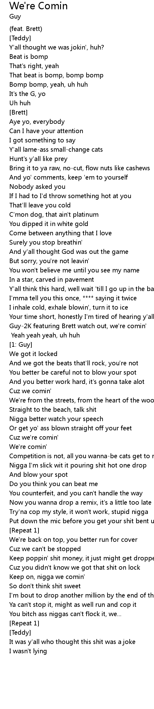 | Guy-2K featuring Brett watch out, we're comin' | |