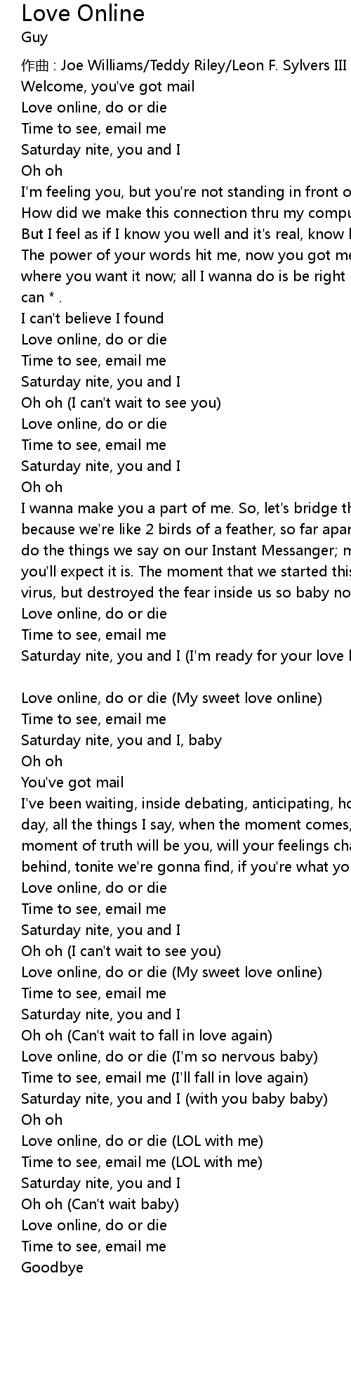 | Love online, do or die I' m so nervous baby | |