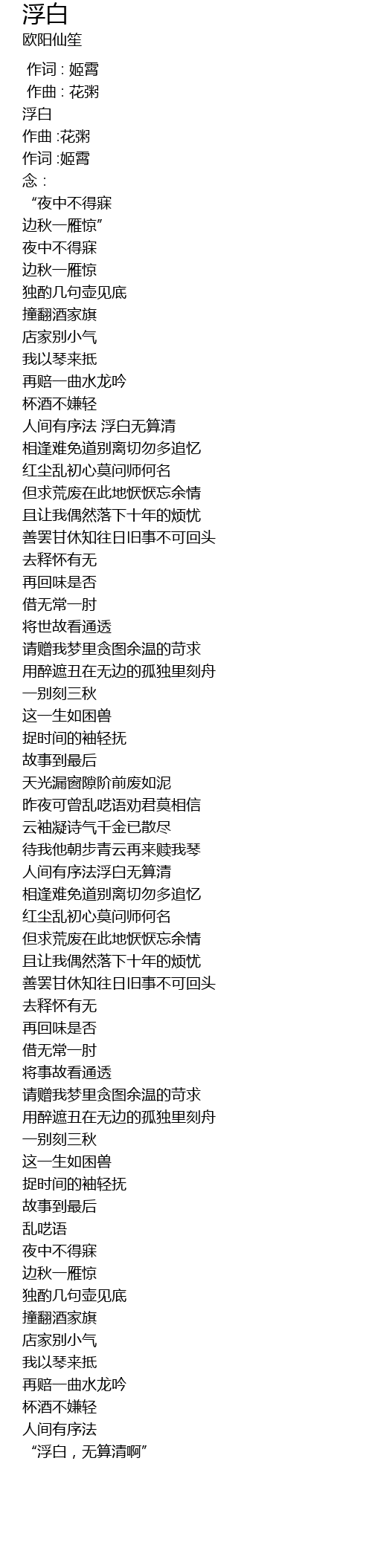 | [00:00.000] | 浮白 |