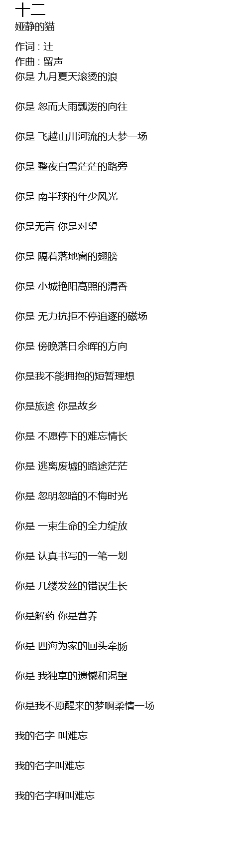 | Song | 十二 |