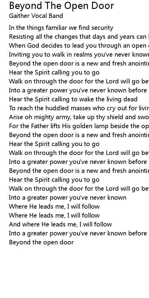 Walk on through the door for the Lord will go before you |