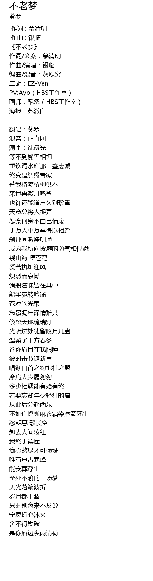 | [00:01.451] | 《不老梦》 |