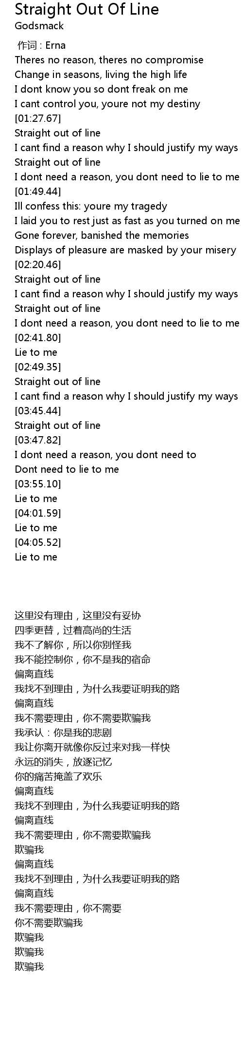 | [02:34.99] | I dont need a reason, you dont need to lie to me |