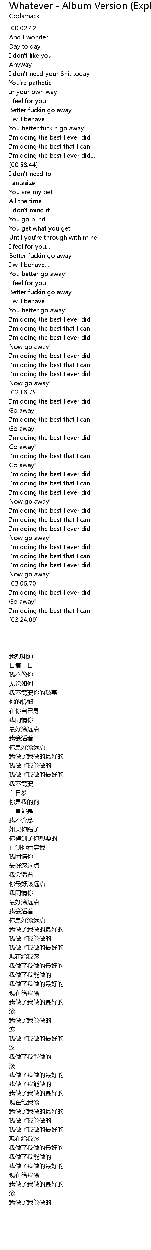 | [01:42.68] | Better fuckin go away |
