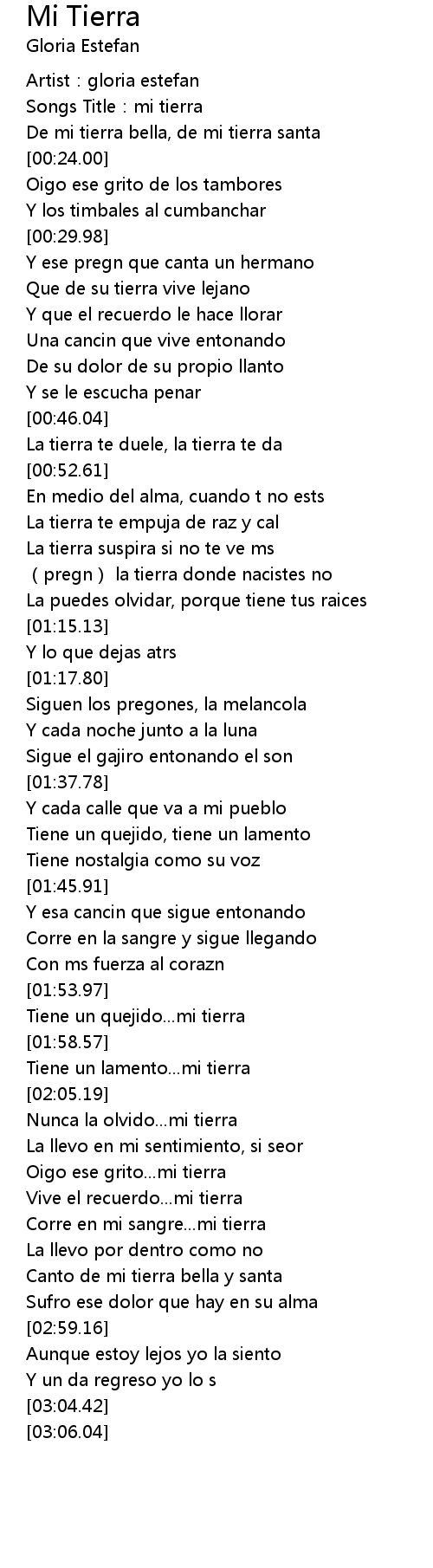 | [02:00.89] | Tiene un lamento...mi tierra |