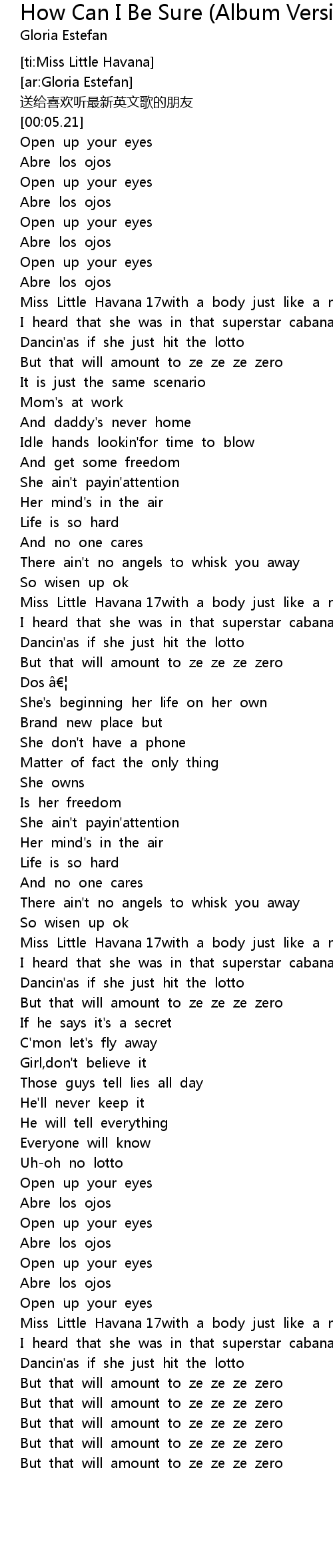 | [00:15.67] | Miss Little Havana 17with a body just like a model |
