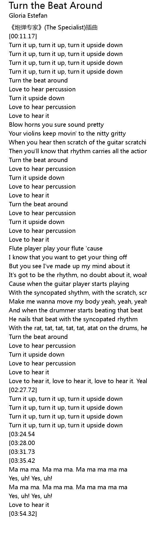 | [03:39.30][03:24.54][02:55.31] | Turn the beat around |