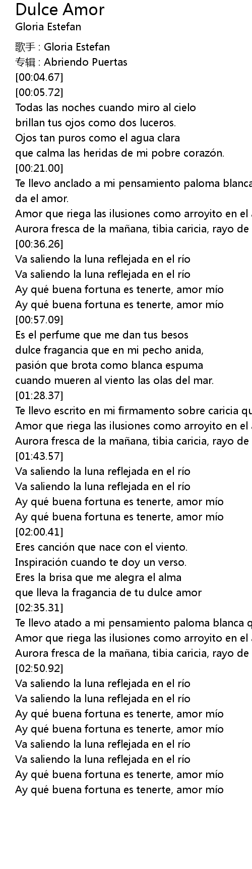 | [00:46.54] | Ay qué buena fortuna es tenerte, amor mí o |
