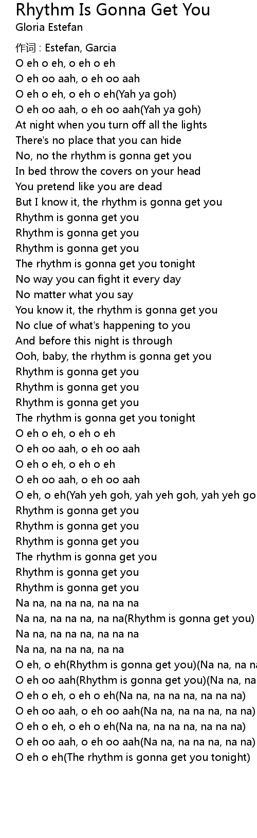 | O eh, o eh(Rhythm is gonna get you)(Na na, na na na, na na na) | |