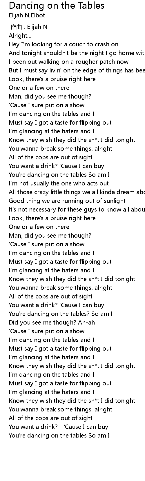 | [00:46.95] | I' m dancing on the tables and I |