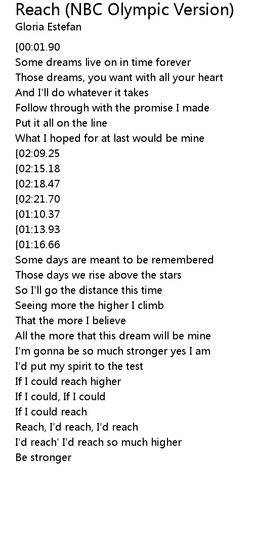 Reach, I'd reach, I'd reach |