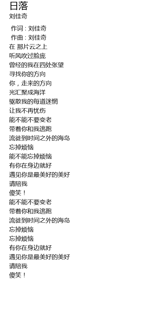 | [00:00.000] | 作词 : 刘佳奇 |
