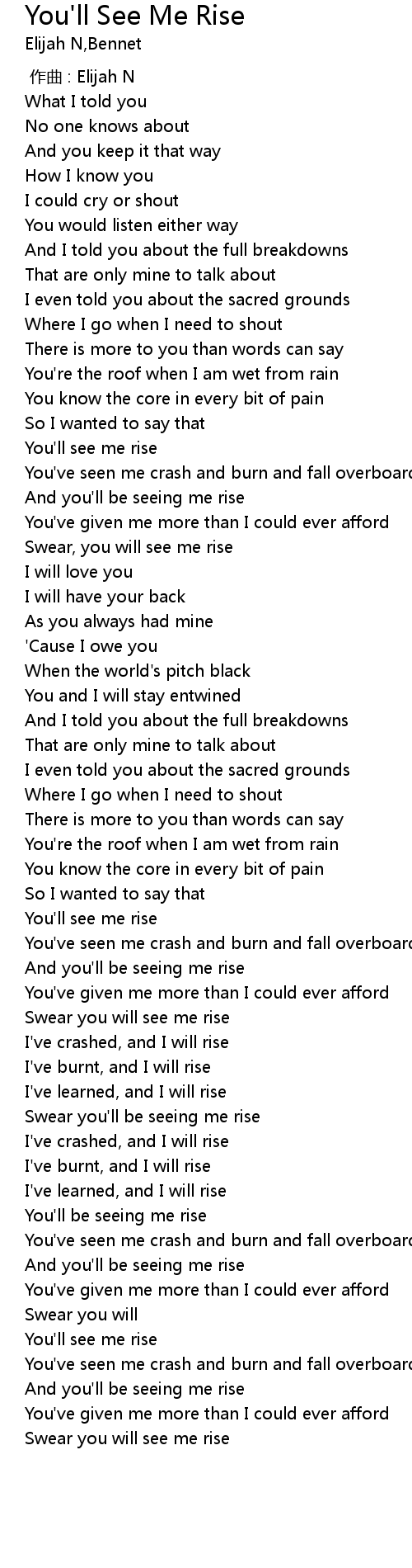 | [02:29.50] | Swear you' ll be seeing me rise |