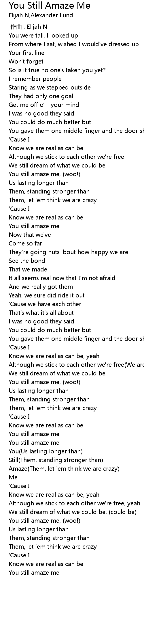 | [02:58.34] | You still amaze me, (woo!) |