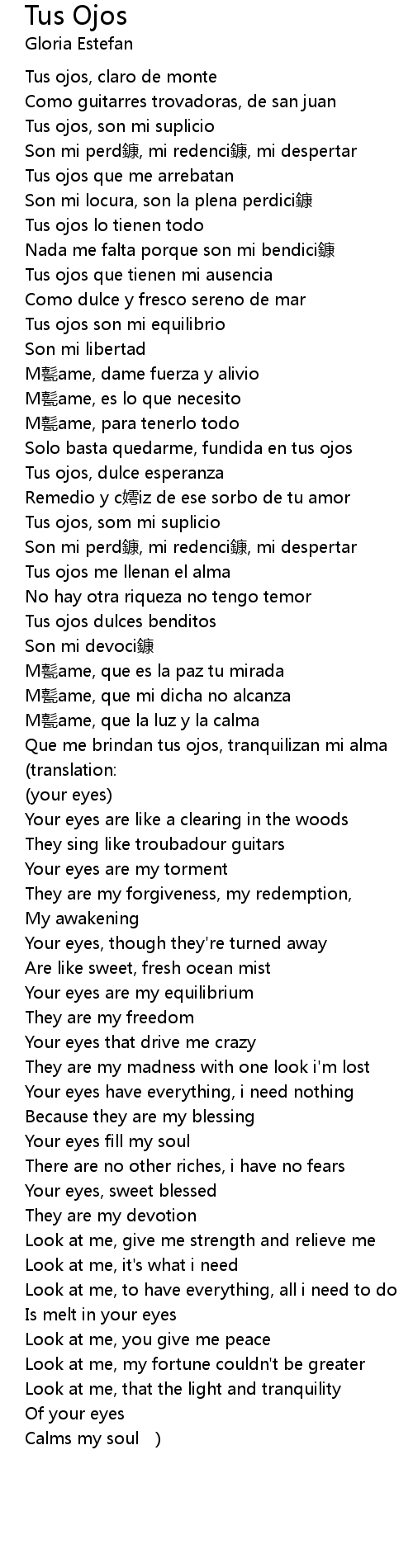 | Que me brindan tus ojos, tranquilizan mi alma | |