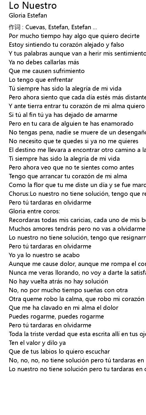 | Chorus:Lo nuestro no tiene solución, tengo que resignarme | |