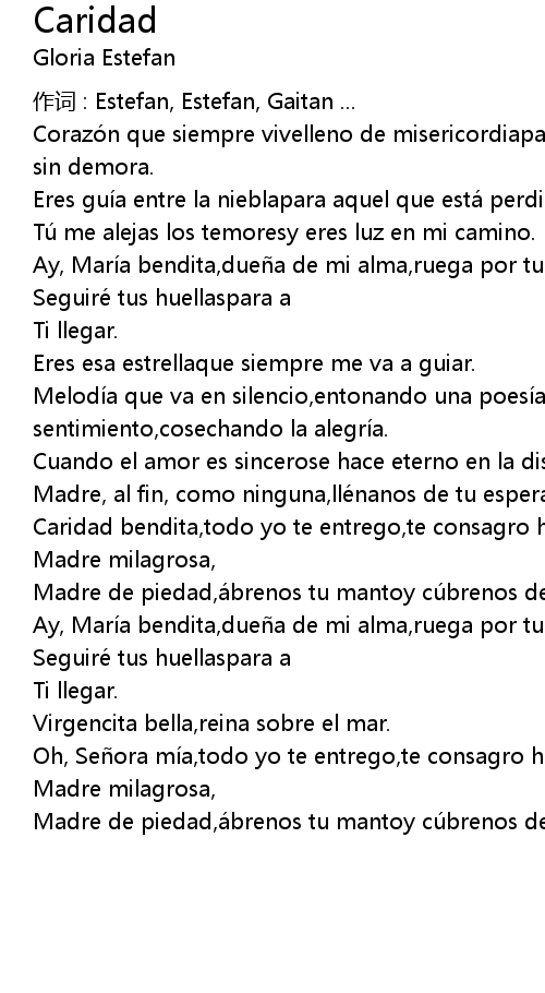 | Caridad bendita, todo yo te entrego, te consagro hoy dí atodos mis desvelos. | |