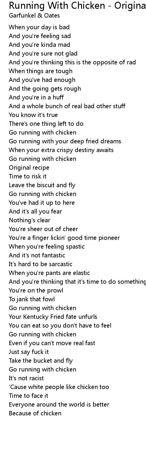 Go running with chicken |