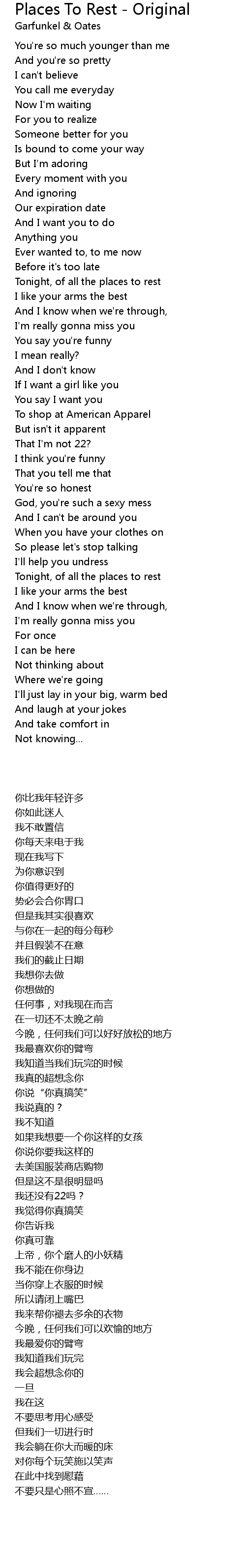 Tonight, of all the places to rest |