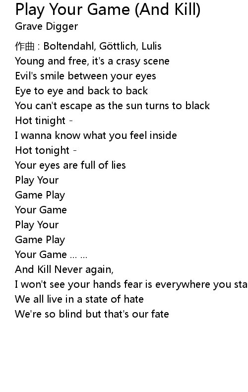 | Song | Play Your Game (And Kill) |