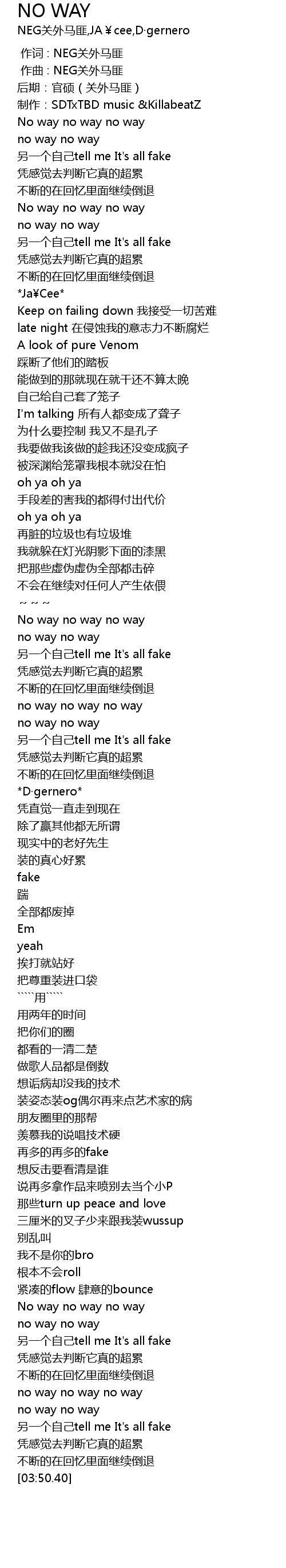 | [00:00.000] | 作词 : NEG关外马匪 |