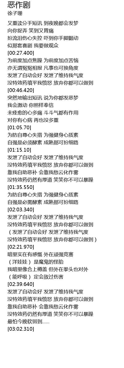 | [02:04.130] | 发泄了自动会好 发泄了维持我气度 |
