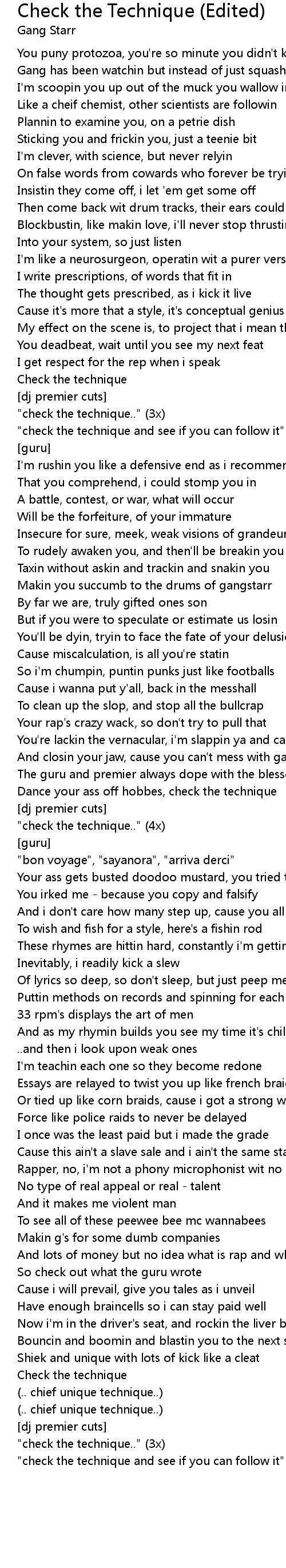 Makin you succumb to the drums of gangstarr |
