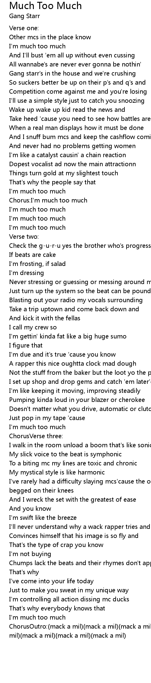 Chorus:I'm much too much |