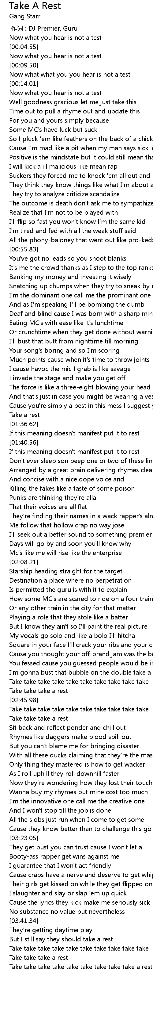 | [03:54.20] | Take take take take take take take take take a rest |
