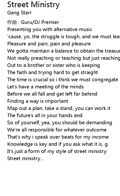 | Song | Street Ministry |