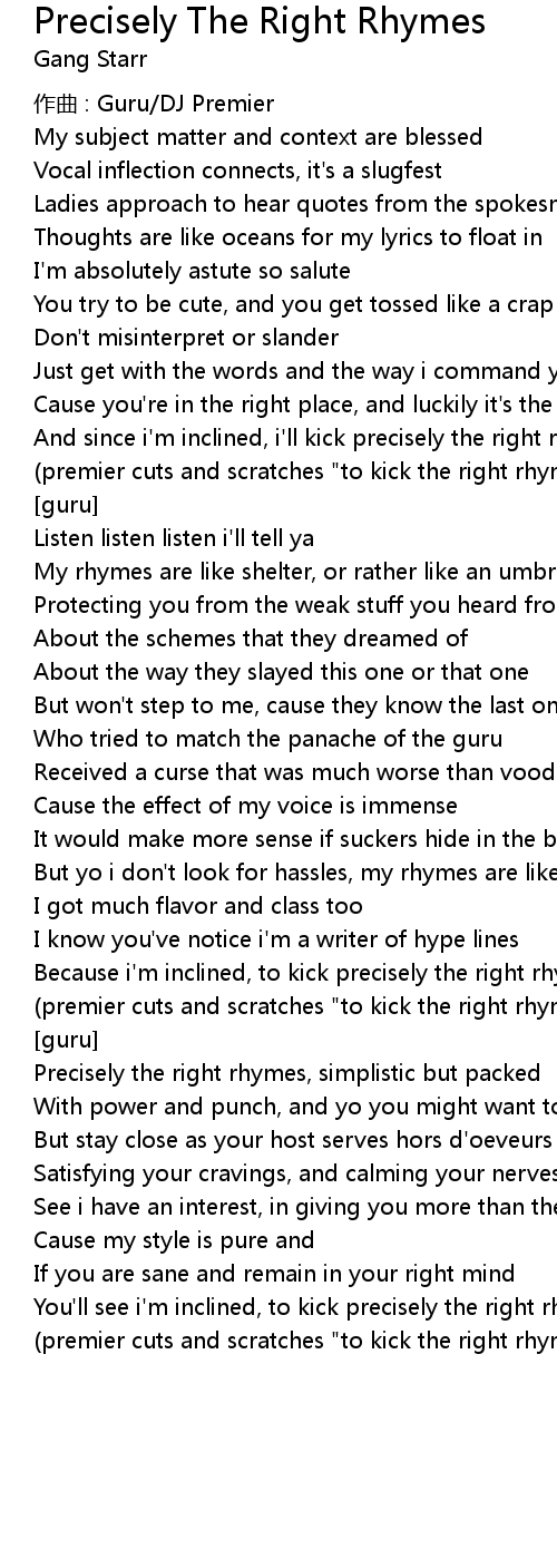| Because i' m inclined, to kick precisely the right rhymes | |
