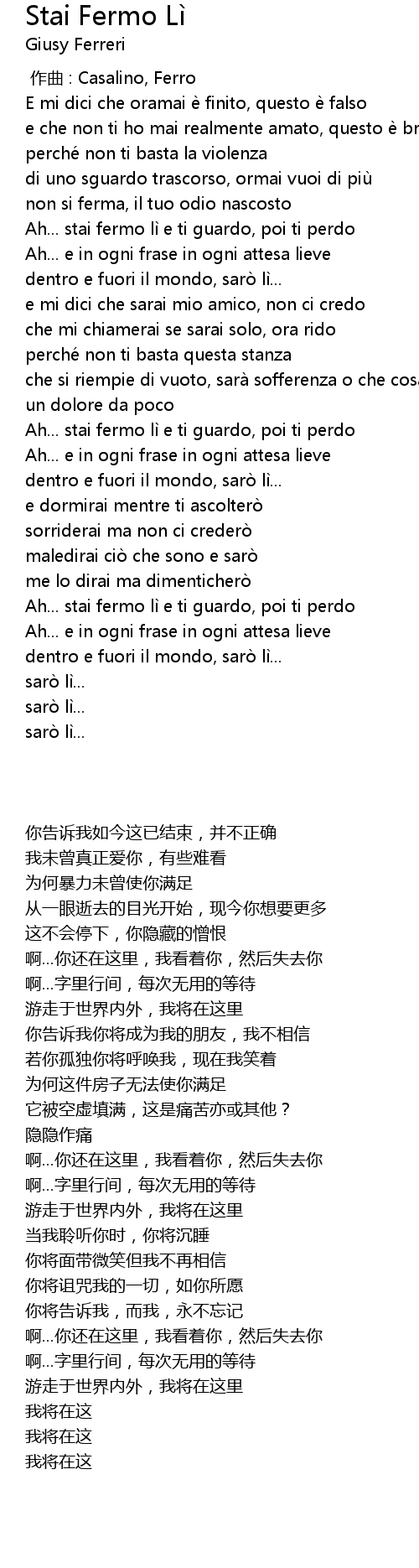 | [03:14.56] | Ah... stai fermo li e ti guardo, poi ti perdo |