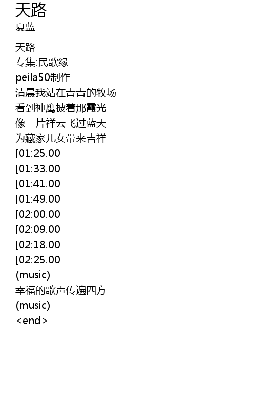 | [03:41.00][02:00.00] | 那是一条神奇的天路 哎… |