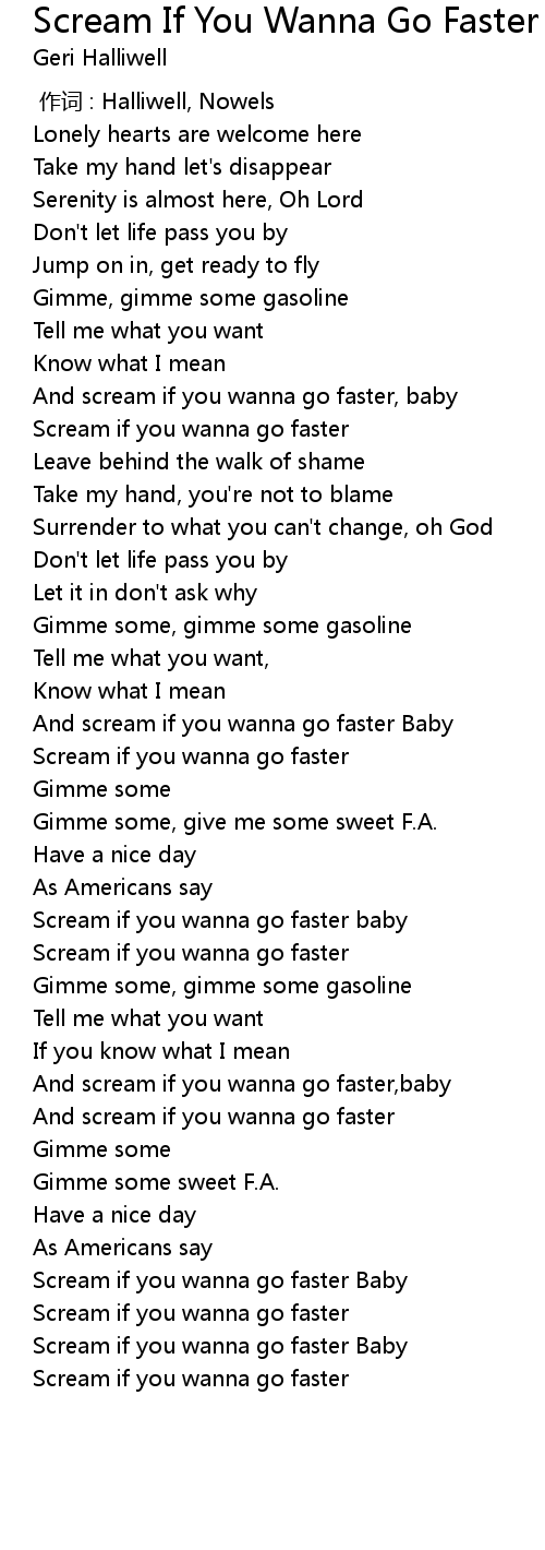 | [02:59.37] | Scream if you wanna go faster Baby |