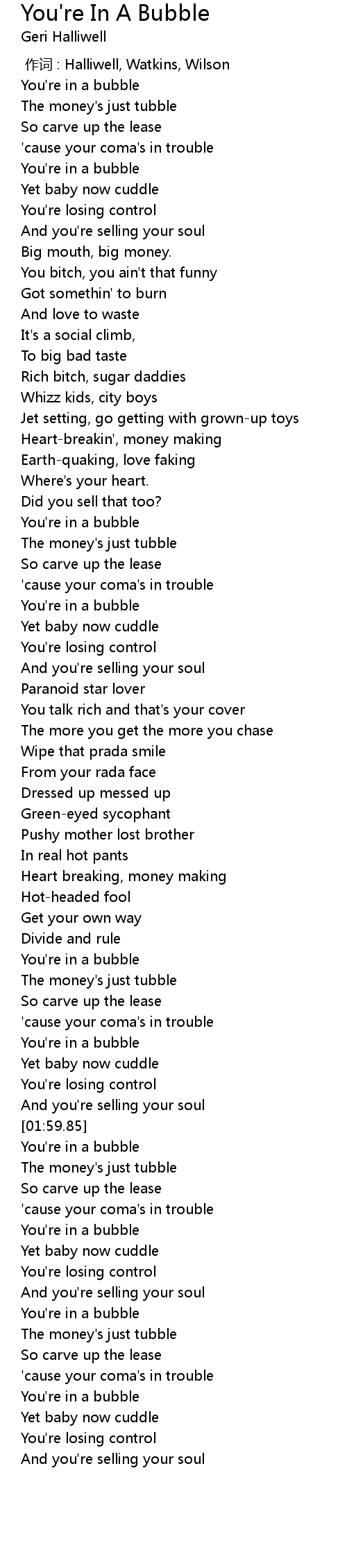 | [01:50.66] | You're in a bubble |